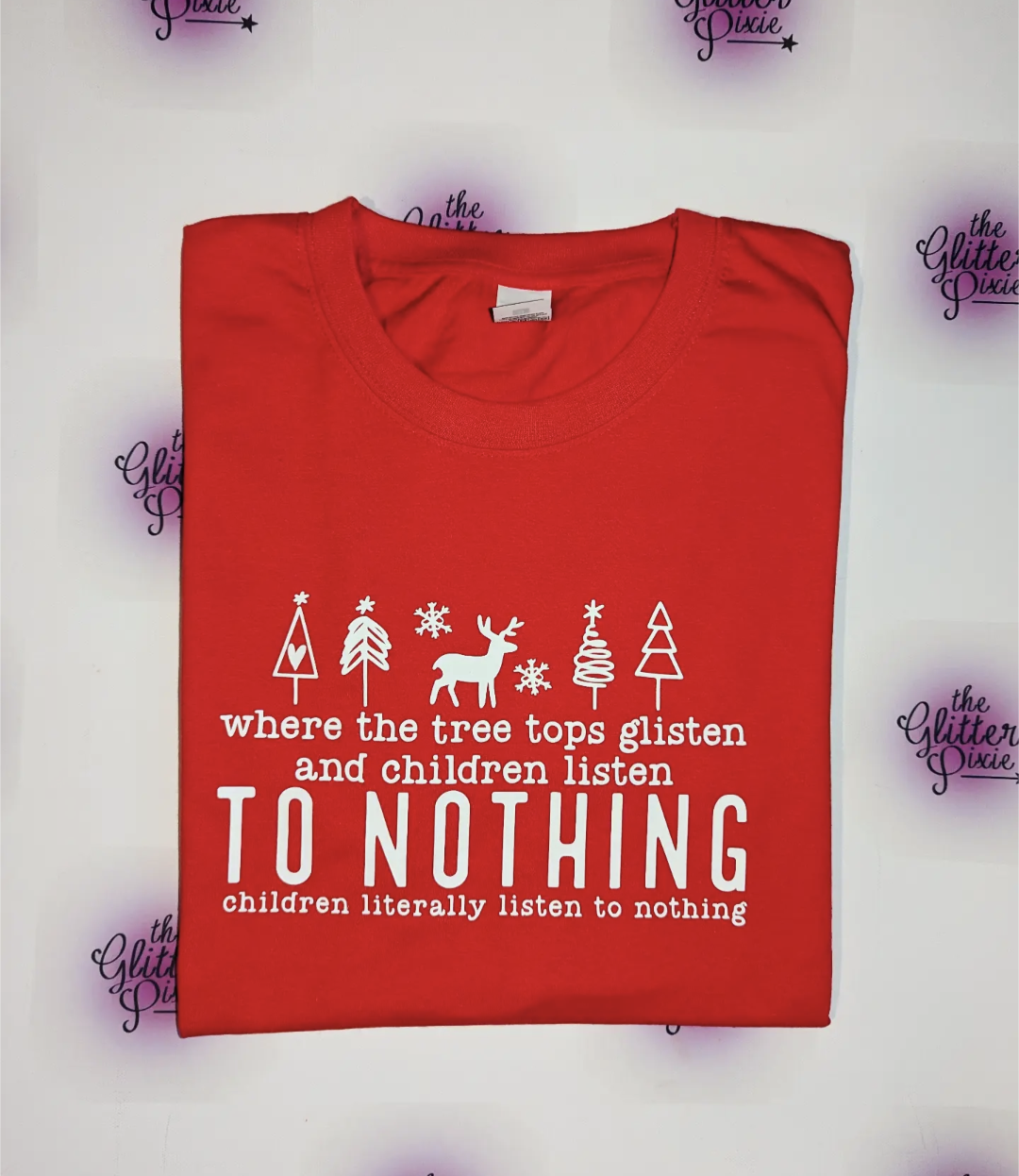 Where treetops glisten and children listen to nothing children literally listen to nothing t-shirt, Christmas t-shirt novelty t-shirt, funny t-shirt, gift for him, gift for her, graphic T-Shirt 🤍