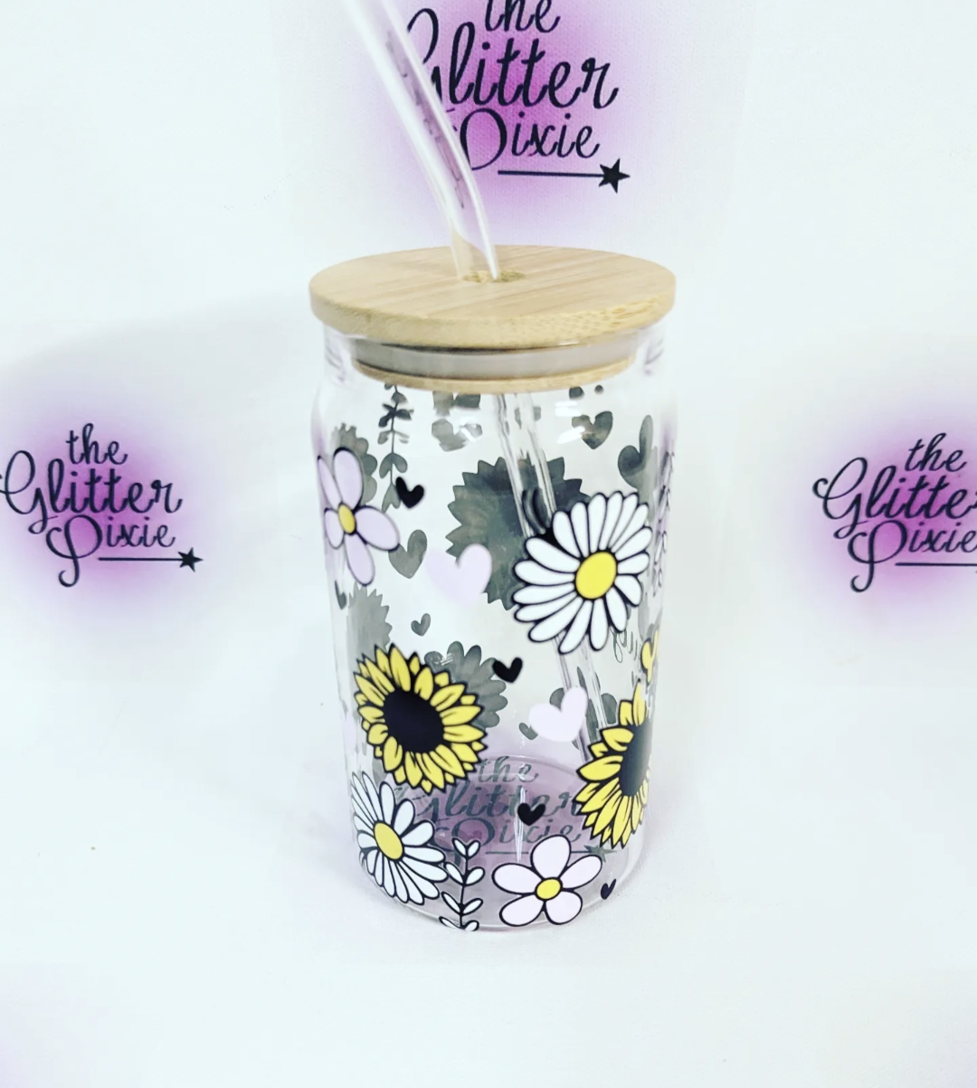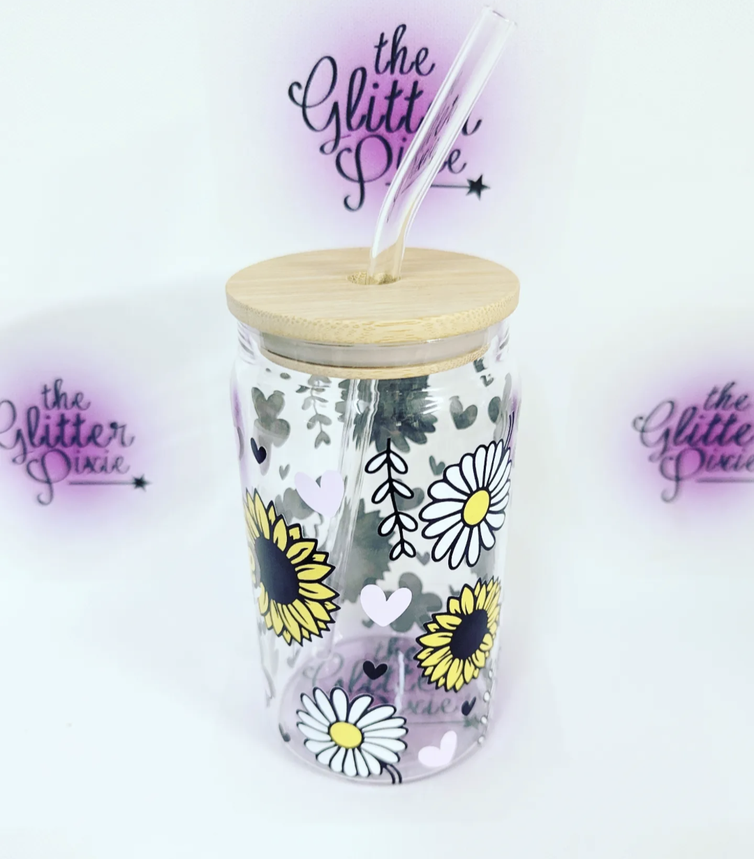 Glass is in the shape of a can and comes with a wooden lid and glass straw 💜